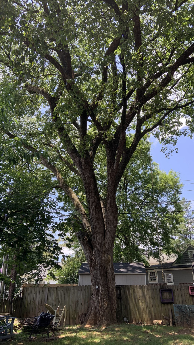 This big elm was nominated by the homeowner in 2021, and it stands in the backyard on private property. An Arborist once told the owner that it likely sprouted shortly after Dutch elm disease wiped out elms in Charlotte, which would have been the mid-1900s. The disease is caused by a fungus which is spread by bark beetles.