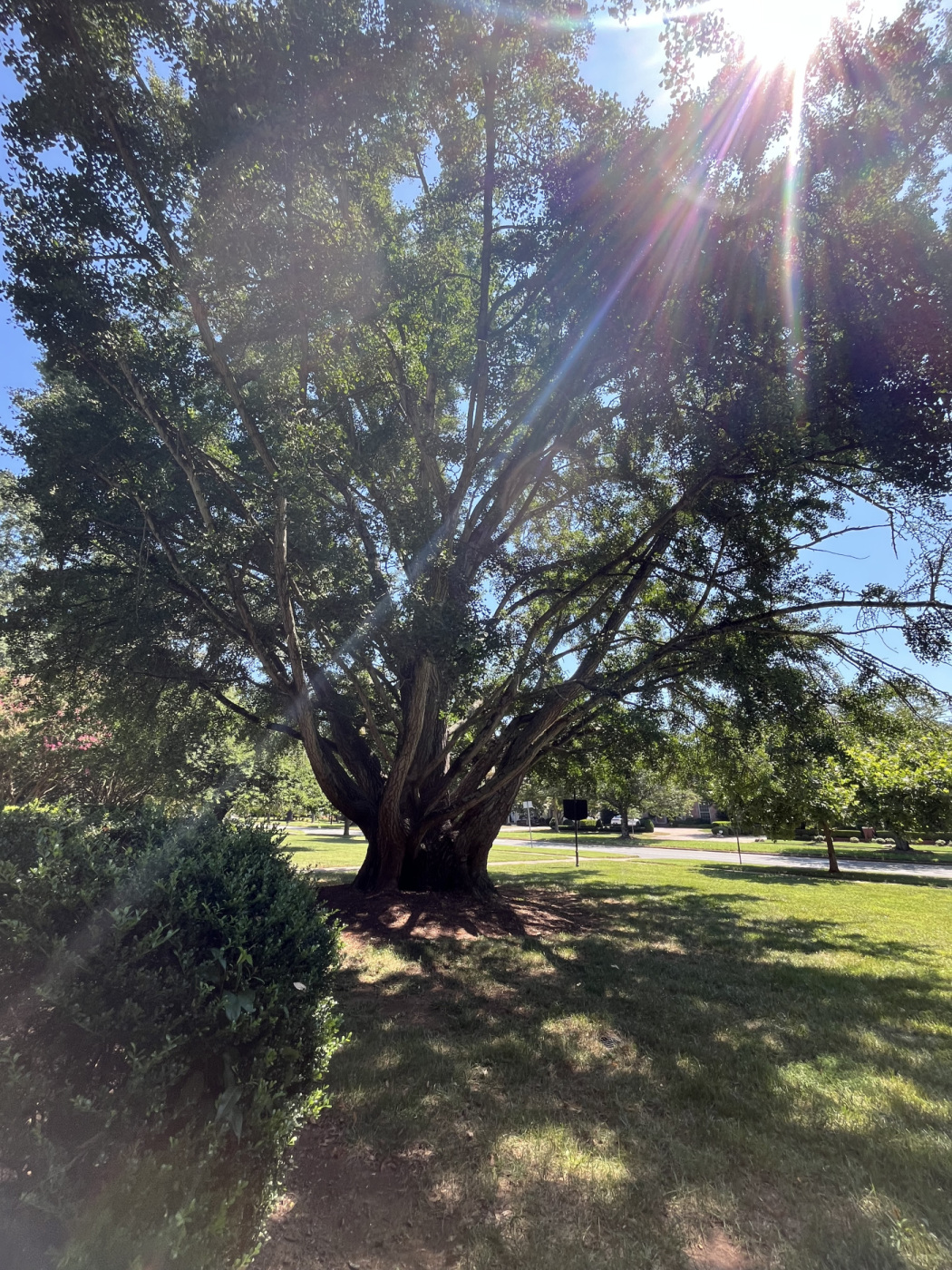 This Ginkgo tree was the state co-champion, or largest known specimen in the state, from June 1989 until February 1991. While this Ginkgo is much larger than the current state champion, the N.C. Forestry Service has declared that it will no longer take new nominations for non-native trees. This Ginkgo tree has grown so much that it has “consumed” the original Treasure Tree tag. It is located to the left of the main door on the Queens Road entrance of the Harris Welcome Center.