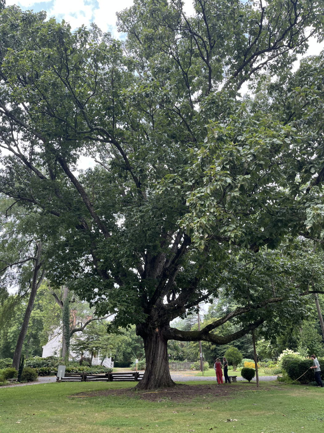 This Swamp Chestnut Oak is located at Historic Rosedale. According to the foundation’s website: “In 1894, this tree was brought to the plantation in a sack, as a gift, to Robert Baxter Caldwell, the third generation to live on the plantation. For many years, this tree was the shade tree for the paddock, which was a fenced area surrounded by barns and livestock quarters. Hogs and cows ate the nuts dropped by the tree and horses were allowed to rest there before being placed in their stalls.” It is located at the right of the drive, before arriving at the Visitor’s Center.