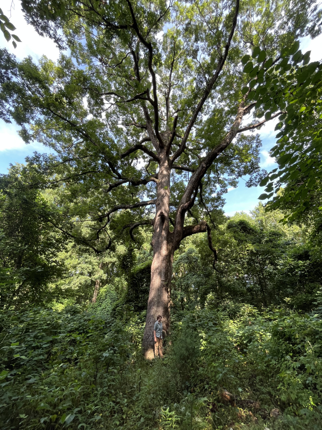This beautiful oak stands almost in the middle of the Ribbonwalk Nature Preserve. The park property was purchased in 1987 by Mecklenburg County, and was named after a woodland garden owned by Queen Charlotte's mother-in-law. This oak stands in a clearing, likely in a spot that was close to an old homestead.
